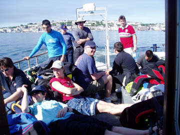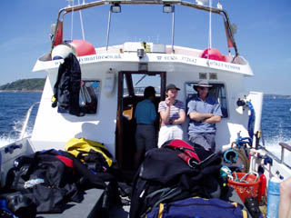 We dived with Westbay Lass, Skippered by Jason Rosenveare. A smallish hardboat but took 9 divers in relative comfort. Entry was by backwards roll and exit was up a ladder by the stern. Was manageable even in full UK kit.