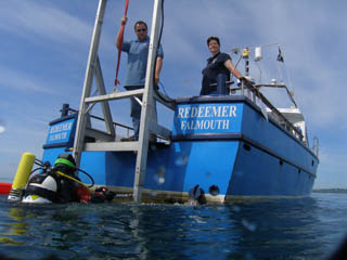 The dive club chartered 4 trips on the vessel MV Redeemer from Bay Marine for the weekend. Good boat with electric lift and on board toilet. Kettle was always hot after a dive with teas, coffees and hot chocolate being dished out to the divers soon after surfacing. The boat has reasonable space and was comfy with 12 divers and full kit on board. The only (very small) criticism was that there was no benches, just raised areas to kit up on/sit on (see below right). Apparently the benches are on order and they will be installed soon. Skipper Shaun and his mate Becky did an excellent job and I would recommend the boat and I'll be certainly using them again (especially after seeing some of the other boats/bath tubs at the dive sites there)!