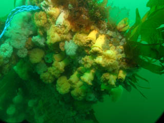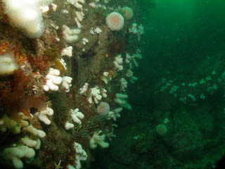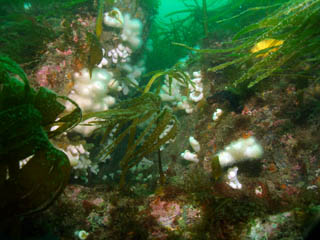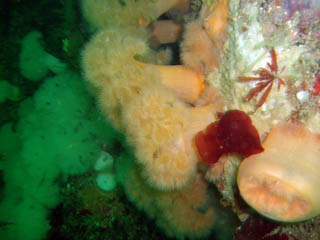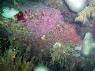 the rocky bottom. The sides of the rocks are coated with dead mans fingers,