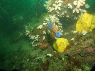 Notable fish life included some wonderfully coloured cuckoo wrasse, posing