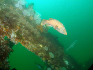 This is a wreck just the other side of the Whelps from Falmouth. Whilst there is a few bits standing tall (3 or 4m) most of it is fairly flat. But even with a metre or two up stand in places there is a lot of holes, overhangs and various nooks and carnies to explore. Fair bit of marine life with crabs, Pollock and unknown (to me anyway) fish. Given the number of overhangs and spaces under the wreckage a torch is a must on this site. Whilst you can have a nice wreck dive without one, many critters are tucked away in the over hangs including some large wrasse.