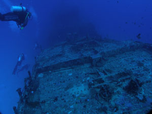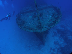 This giri has a wreck on it, thank god as the British divers in the group were suffering from rusted metal withdrawal symptoms. The giri itself starts at 2/3m and is circular. The wreck starts at 16m and drops down to 37m at the propeller.