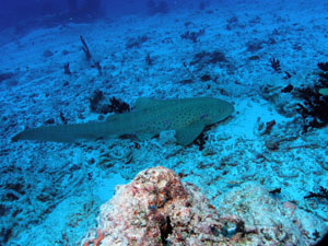 This was a wall dive with some strong currents. As with most wall dives with strong currents there was plenty of shark action with white tips and leopard sharks seen during the dive as well as marble stingrays, large groupers and napoleon wrasse.