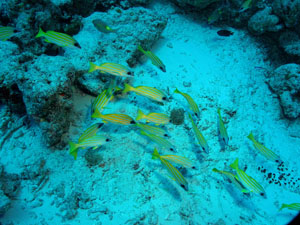 Notable Sea Life - Silvertip and whitetip reef sharks, green sea turtles, hawksbill turtles.