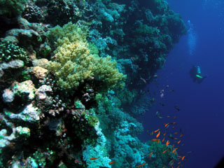 The third dive of the day was around the southern plateau of Elphinstone. No sign of the hammerhead shark but the Oceanic Whitetip was still about. Also saw some Red Sea Anemone Fish (Nemo's) a few free swimming Lionfish and some Baracuda but they never got close enough to pose for the camera. On all dives there were the usual swarms of Anthias, coral groupers, cornet fish and the other usual suspects. Water tempature was around 22 degrees.