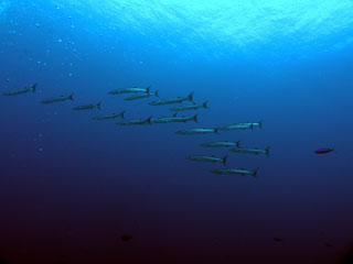 Just after the wrecks a small shoal of Barracuda passed us, numbering about 12. For once they got fairly close as they were patrolling around the wreck.