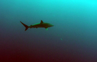 Steve the dive guide brought a small plastic bottle which he kept squeezing to make some noise hoping to attract a shark. And it worked, after a couple of minutes a Silky sharked turned up to find out what all the racket was. The Silkys are a bit shy and wouldn't get close.